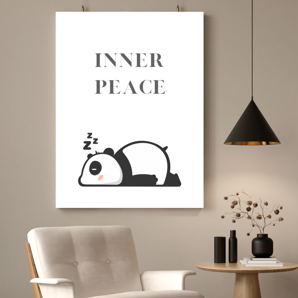 Multiple Sizes Printable Poster: "Inner Peace Panda" - White plus black font.